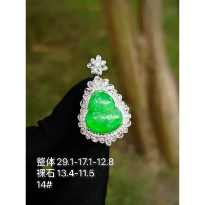 翡翠戒指,滿綠葫蘆吊墜戒指兩用款,整體:29.1-17.1-12.8,裸石:13.4-11.5