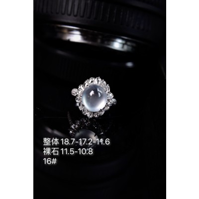翡翠戒指,18k金鑲高冰蛋面戒指,裸石:6.0-5.3