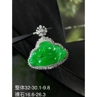 翡翠吊墜,18k金鑲滿綠佛公吊墜,整體:32.0-30.1-9.8,裸石:16.6-26.3