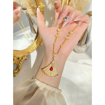 紅寶石,紅寶扇子項鏈,紅寶采用精湛的切割與鑲嵌工藝,31.79g
