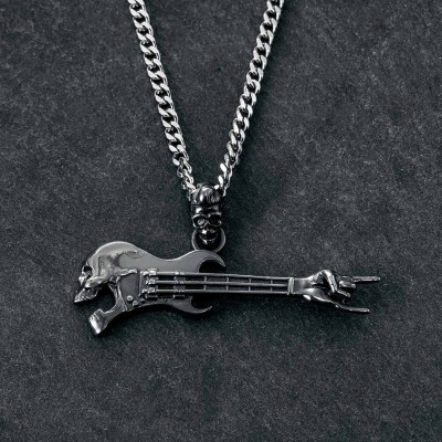 Helloice 搖滾手勢骷髏吉他吊墜在黑金